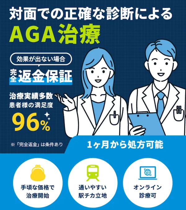AGA治療は、全ての方に完全な効果が保証されるものではなく、症状の進行度や個人差により、治療の成果は大きく異なります。