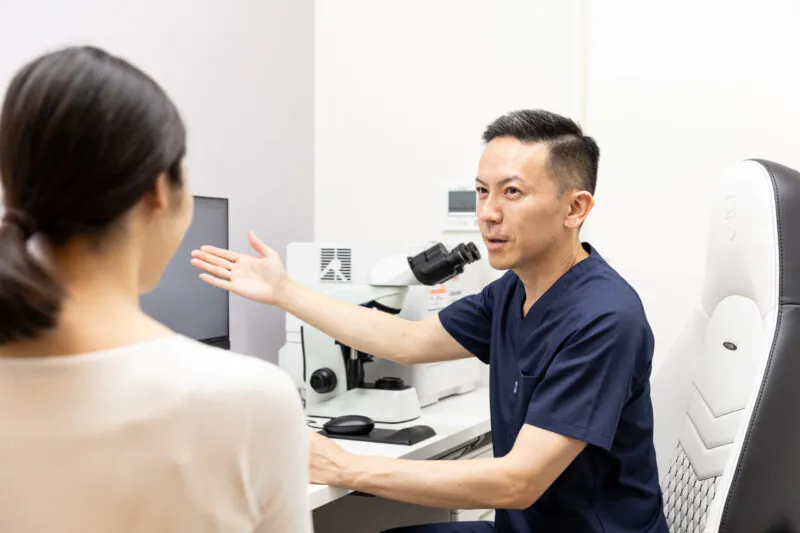 メイクを落としていただいた後、カウンセリングをお受けいただきます。たるみの状態など、お悩みの相談をお受けし、最適な施術部位や施術出力などオーダーメイドでプランをご提案させていただきます。