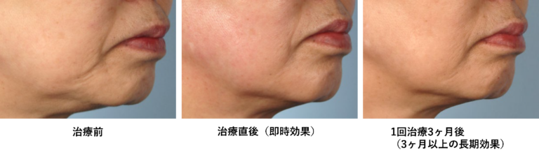 その結果、顔全体のたるみやほうれい線、しわ、毛穴の開き・たるみの改善効果も期待できます。また、肌質の改善も期待できます。